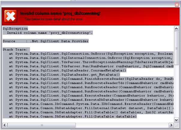 Mesmo tendo dado certo a instalação continua apresentando o mesmo erro de "invalid column name 'proj_db2connstring'" quando tento configurar no Business Object Mapper...