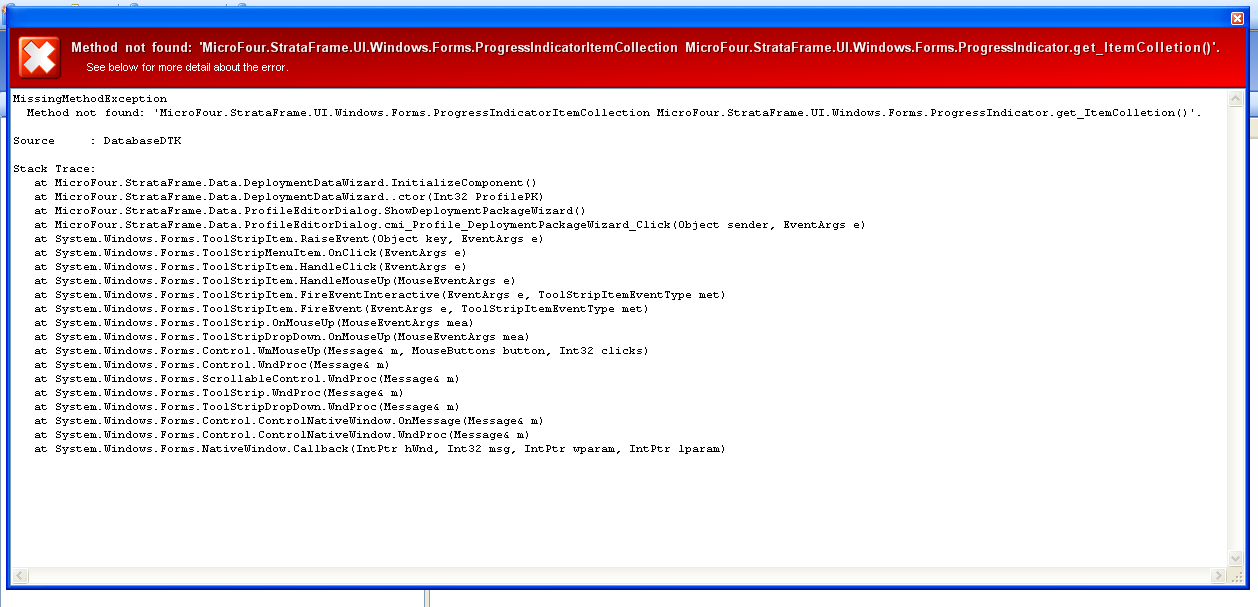 I haven't had to run this in a while but I need to add the security tables to my package but I get the attached error when I click on Deployment Package Wizard.