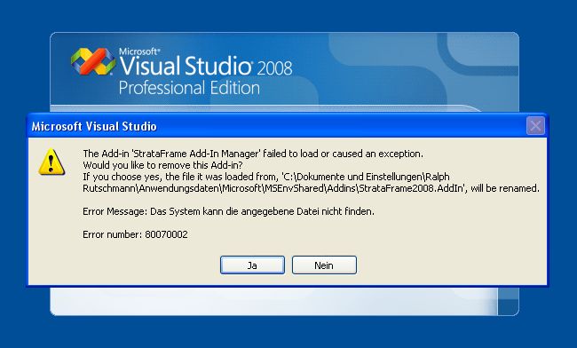 StrataFrame 1.6.5 - VS2008 Add-In Error