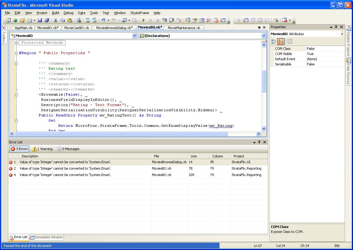 It sounds like your issue here is that you went in and attempted to map the StrataFlix BOs through the BO mapper.  We do not distrubute the BO Mappings (yet) so if you do this, you will have to supply the custom data type overides.  In this case, just re-extract the StrataFlix sample and recompile and you should be good.