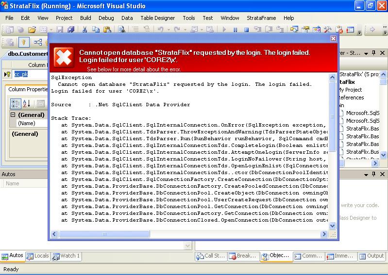 This post ( http://forum.strataframe.net/FindPost3868.aspx Wink will help you to get the connection wizard back when you run StrataFlix. Try and follow Trent's instructions and see if you can connect to your database.