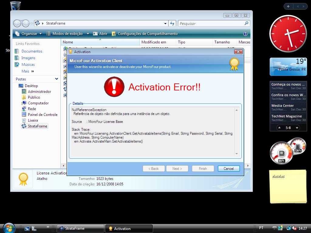 Strataframe Activation Erro