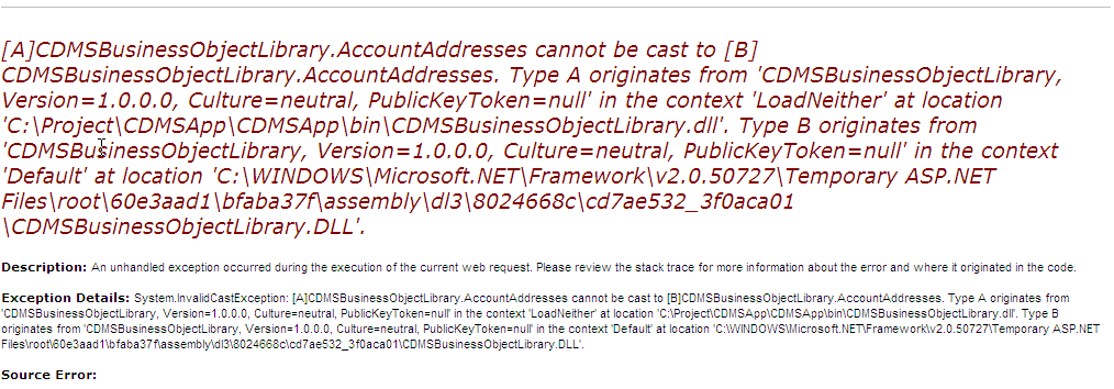 But it will most likely be along these lines that you are experiencing the casting exception since the versions appear to be the same assembly and namespace.