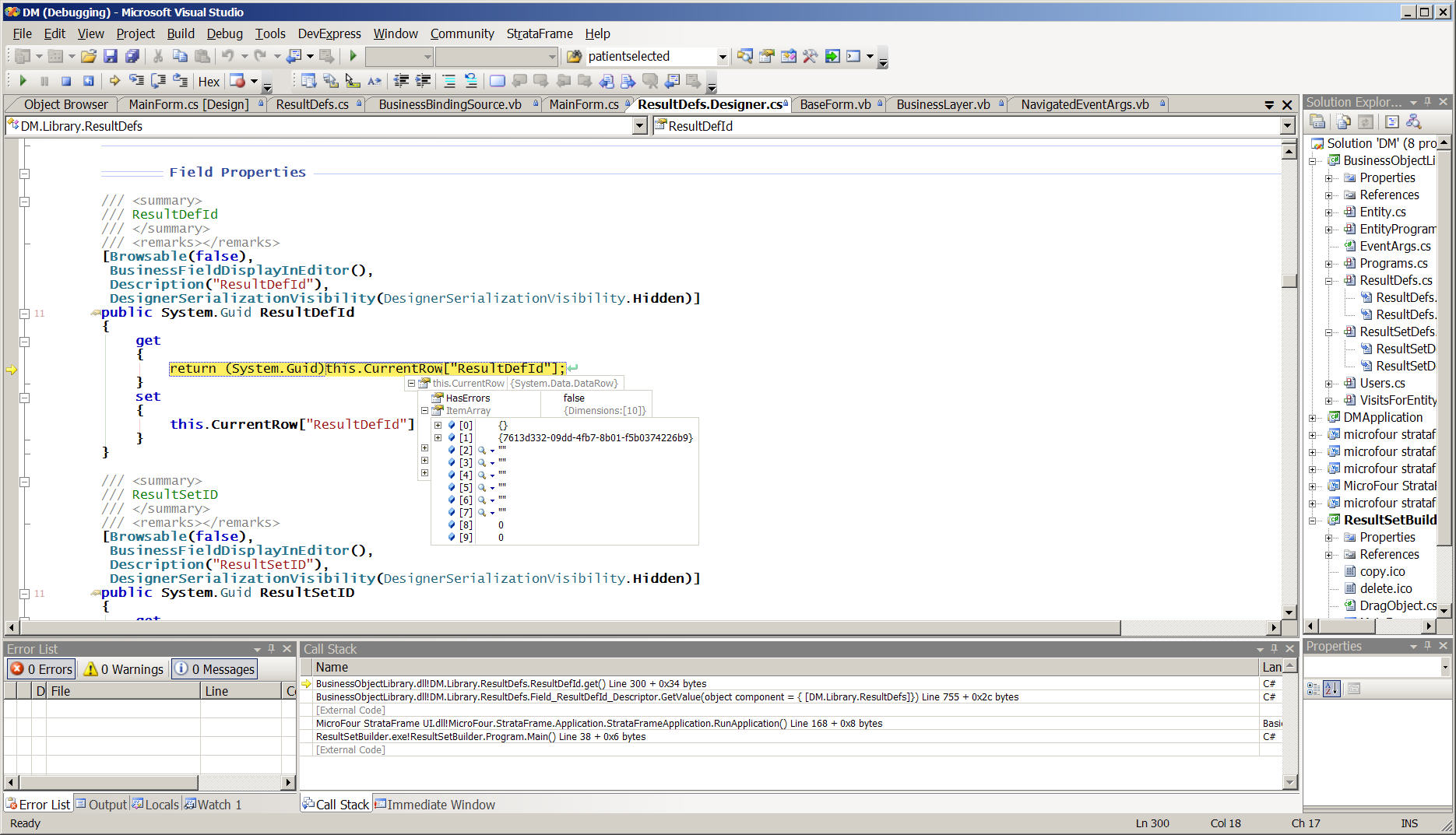 at DM.Library.ResultDefs.get_ResultDefId() in E:\_work.SF\DM\BusinessObjectLibrary\ResultDefs.Designer.cs:line 300
