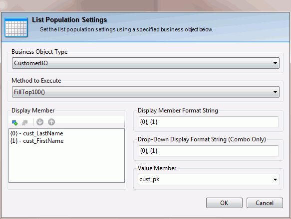 Also see the Data Binding topic for information on how to bind the combo to a value in the BO (the FK).