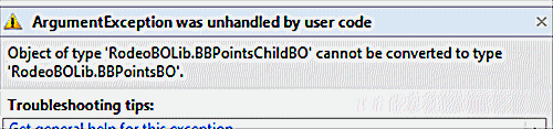 Object of type RodeoBOLib.BBPointschildBO cannot be converted to type RodeoBOLib.BBPointsBO.