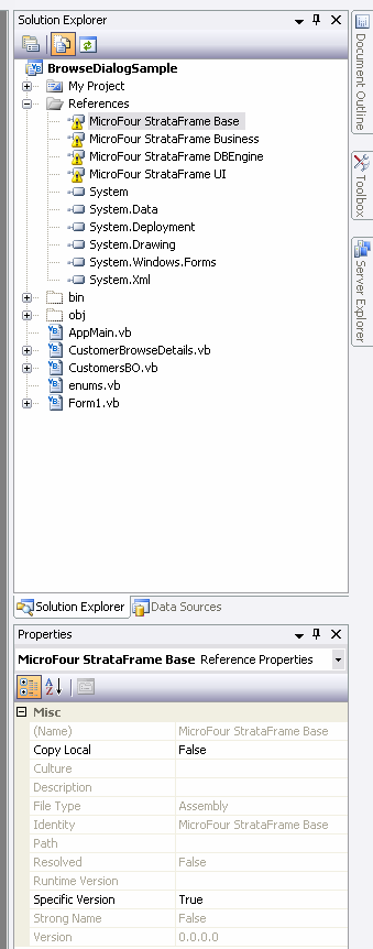 Just delete those references and add them back in. Don't worry about settings the SpecificVersion property. These samples will be included in the installation of 1.5 and will be for both VB and C# and will be adjusted to take account of the new assembly versions.