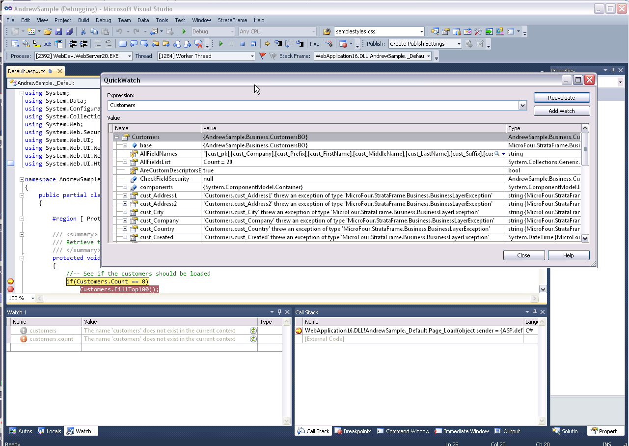 I ran the sample application that you sent me on a different computer running VS2010 yesterday and got the same result as shown in my earlier post. What I found however was if I added a quick watch the object was instantiated and if I continued the grid did display. see attached screen shots. I tried again on my computer and got the same results.