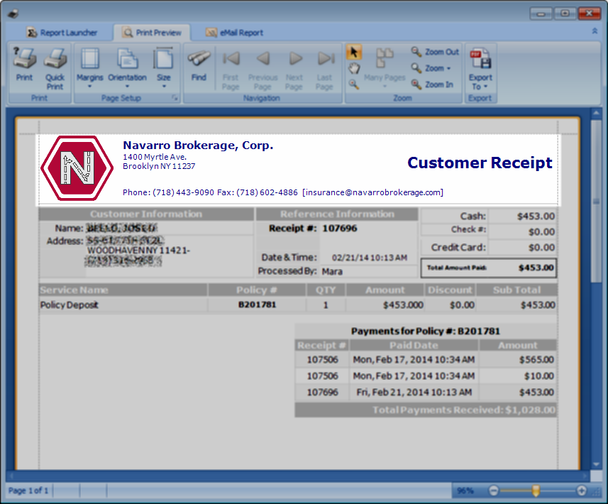 Using this method, you can have your DevExpress Master Report with the Header showing the same info like company name and address as well as the report or transaction type, in my case here, a Customer Receipt and a Transactions Report shown in the attached images.