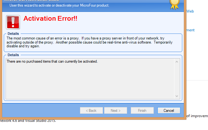 I am trying to activate my account on my new Win 8.1 with a new Ethernet dongle. I get the error that is attached.
