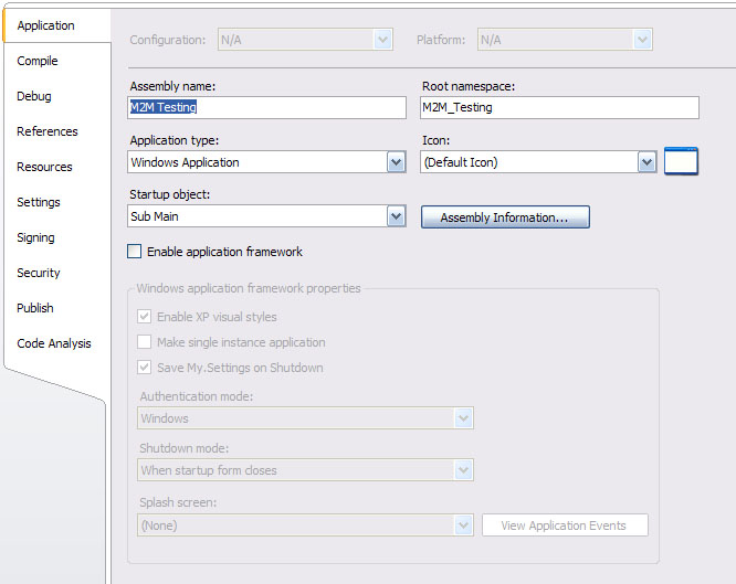 It looks from the Stack Trace that you're not running through the AppMain.vb file at all. Check your project properties and make sure that the "Startup object" is set as "Sub Main." If you want you change the form that is launched at application startup, then you need to change the InitApplication() method within the AppMain.vb file.